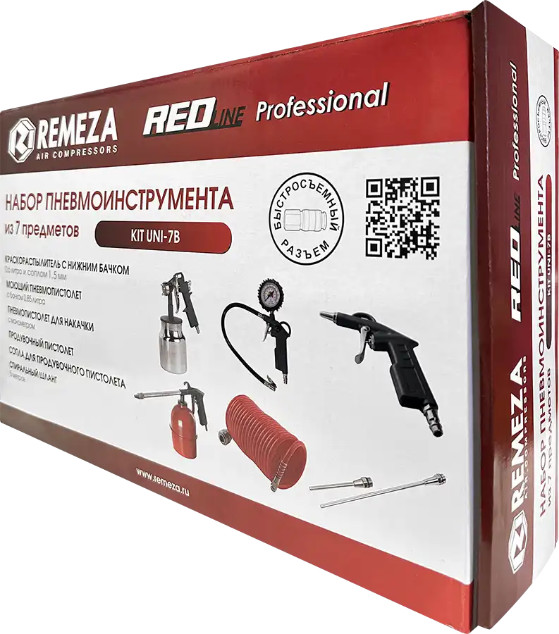Все инструменты в наборах имеют быстросъёмное подключение, благодаря чему к спиральному шлангу можно быстро подключить любой инструмент и приступить к выполнению рабочей операции.